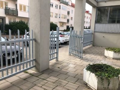 Säkerhetsgrind enligt kundspec. Anpassad efter BRF område där området hägnats in.