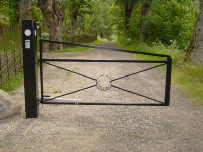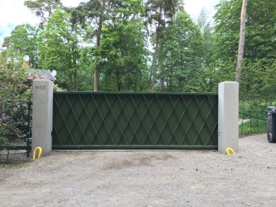 En mindre motordriven grind kan vara en smart lösning vid en privat väg.